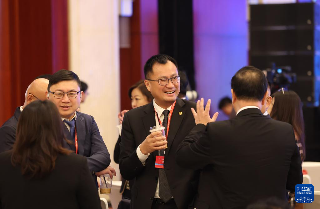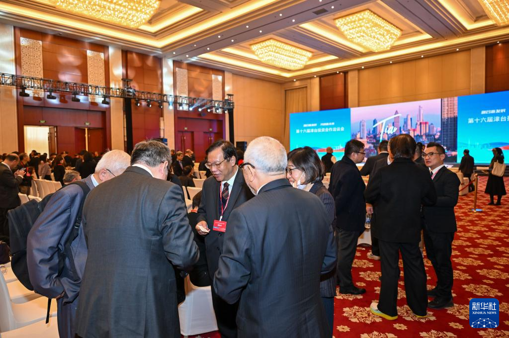10月29日,與會嘉賓參加第十六屆津臺投資合作洽談會會場溝通交流。新華社記者 孫凡越 攝