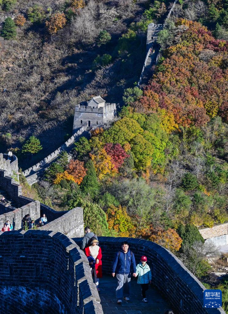 晚秋時節,位于天津市薊州區的黃崖關長城,山巒間的彩葉層層疊疊、絢爛繽紛,將濃烈的秋意潑灑在長城內外。