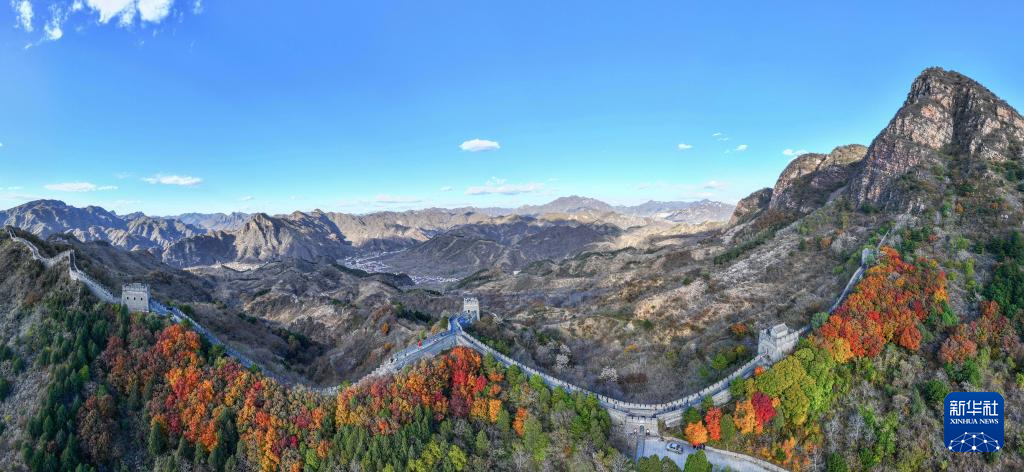 11月1日拍攝的黃崖關長城秋景(無人機全景照片)。新華社記者 陳曄華 攝
