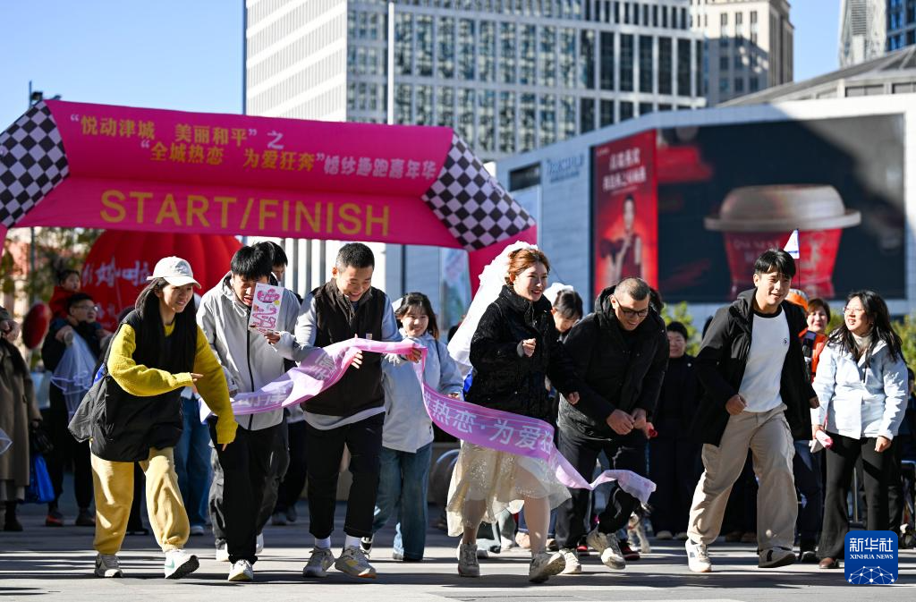 當日,由天津市和平區民政局主辦的“悅動津城·美麗和平”之“全城熱戀·為愛狂奔”婚紗趣跑嘉年華活動在和平區金街步行街舉行,吸引了數十對情侶參加。