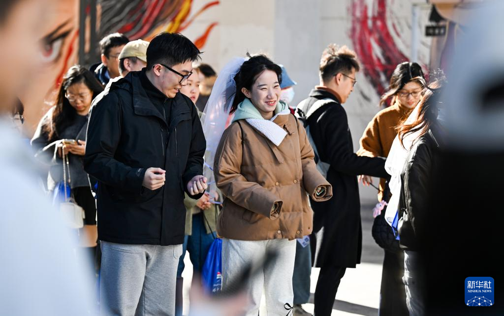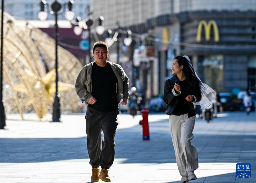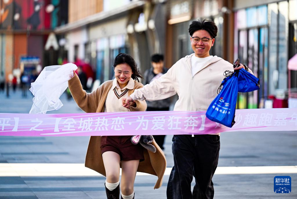 11月2日,參加活動的一對情侶在沖刺。新華社記者 趙子碩 攝pagebreak