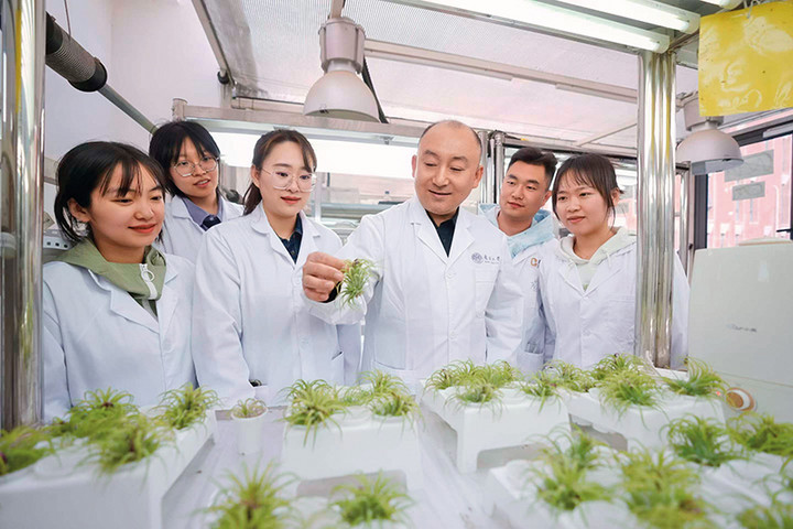 南開大學環境科學與工程學院新污染物研究團隊開展微塑料植物模擬暴露實驗(2025年4月9日攝) 宗琪琪攝